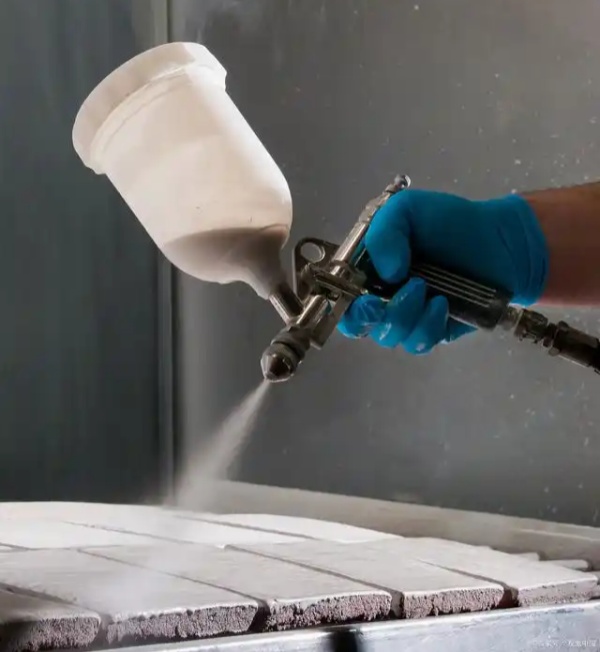 用喷枪把油漆、涂料等液体雾化喷在工件上,自然晾干或低温烘干。